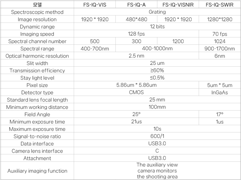 FigSpec® FSIQ 시리즈 휴대용 하이퍼스펙트럴 카메라는 내부 스위프 방식의 하이퍼스펙트럴 카메라입니다.