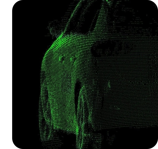 ·공간해상도 (수 mm 단위): 물체 표면에 찍히는 점과 점 사이의 간격입니다. 점이 촘촘할수록 물체의 전체적인 형태(3D 형상)가 선명하게 보입니다.