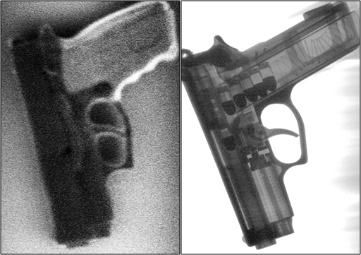 Backscatter(후방산란)과 Transmission(투과) X-ray가 함께 작동하여,